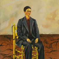 Frida Kahlo painted this self-portrait shortly after her divorce from Diego Rivera, expressing a symbolic break with her traditional feminine appearance. Seated on a yellow chair, she appears dressed in an oversized men's suit, a chisel in her hand, surrounded by strands of freshly cut hair. Her face remains impassive, but the gesture is radical: she renounces a part of herself, possibly in connection with the image that Rivera loved.