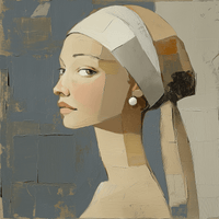 Dies ist eine eindringliche Neuinterpretation von Vermeers „Das Mädchen mit der Perle“, die in der einzigartigen Ästhetik von Nicolas de Staël neu aufgelegt wurde. Die klassische Sanftheit des Mädchens wird in subtil nuancierte Farbblöcke fragmentiert, die für den abstrakten, texturierten Stil des Künstlers charakteristisch sind. Die neutralen Farbtöne und geometrischen Formen erzeugen eine Spannung zwischen Figuration und Abstraktion und verleihen dem Werk ein faszinierendes Gleichgewicht zwischen Tradition und Moderne. Eine fesselnde Transformation, die Vermeer ehrt und gleichzeitig Staëls kühne visuelle Signatur übernimmt.