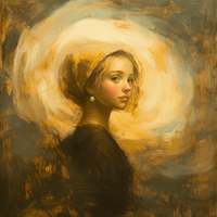 Tauchen Sie ein in eine leuchtende und atmosphärische Neuinterpretation von „Das Mädchen mit der Perle“, die in die ätherische Welt von William Turner versetzt wurde. Die Sanftheit von Vermeers Original trifft hier auf goldene Lichtwirbel und nebelige Nuancen, die an romantische Sonnenuntergänge und Meereslandschaften erinnern. Die in eine geheimnisvolle Aura getauchte Perle scheint in einer betörenden Atmosphäre zu schweben und die Flüchtigkeit des Augenblicks einzufangen. Diese zarte Fusion enthüllt Turners visuelle Poesie und ehrt gleichzeitig die zeitlose Schönheit des Originalwerks.