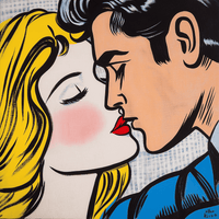 Tauchen Sie mit dieser Neuinterpretation von „Der Kuss“ in die kühne, grafische Welt von Roy Lichtenstein ein. Die Liebenden sind in einer ikonischen Pop-Art Ästhetik eingefroren, in der markante schwarze Striche und leuchtende Farben die Intensität ihrer Gefühle einfangen. Die für Lichtenstein charakteristische Wiedergabe in Benday-Punkten erinnert an die Comic-Kultur und verleiht der Liebesszene eine zeitlose und zeitgenössische Dimension. Dieses Werk verfremdet die ursprüngliche Romantik zu einer vibrierenden, modernen Aussage über Intimität und visuelle Kunst.